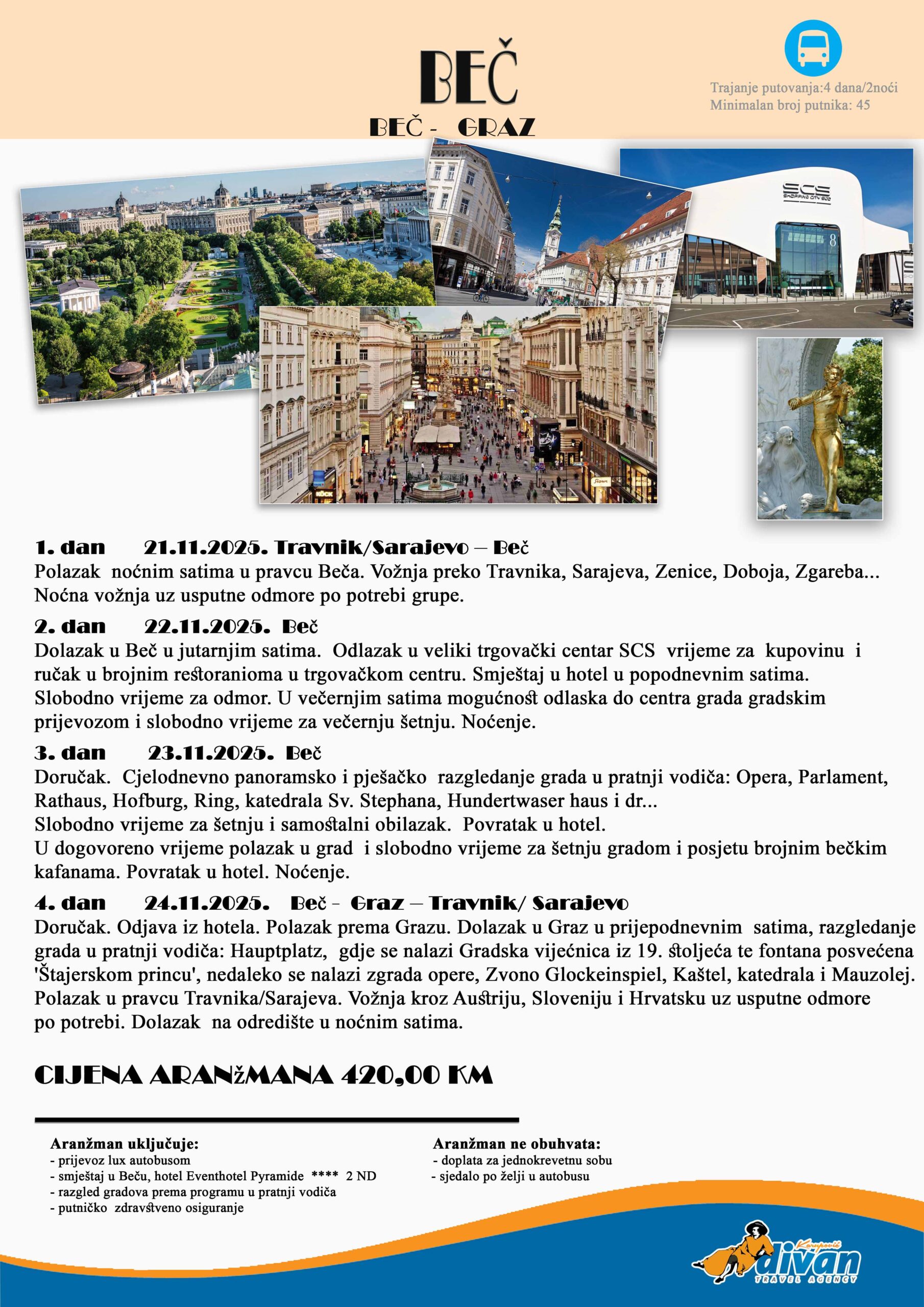 1.  dan 21.11.2025.  Travnik /Sarajevo – Beč